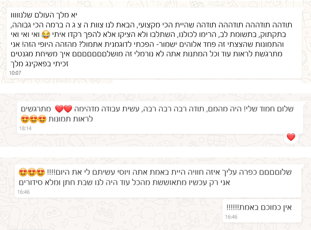 הצילומים יעזרו לכם להרגיש יותר בנוח ביום הגדול, ותשאירו אתכם עם תמונות מרגשות, טבעיות ומלאות באווירה של אהבה ושמחה.